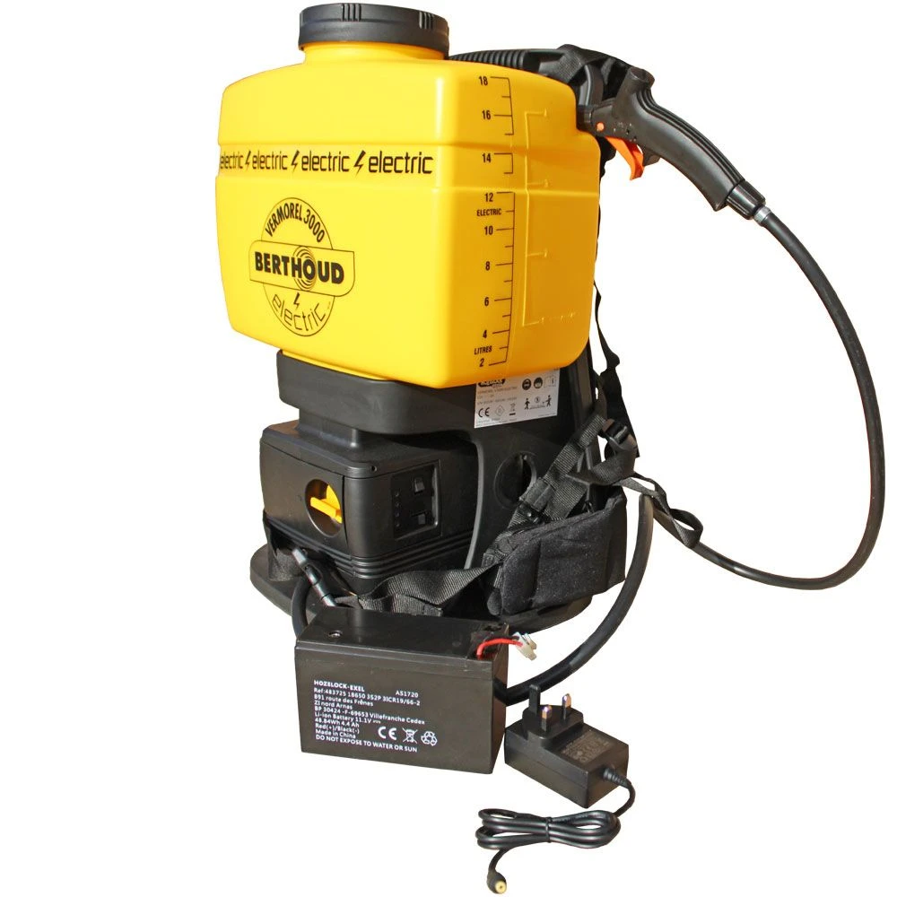 The industry benchmark for electrically powered knapsack sprayers from Berthoud. Battery sprayer powered by a single 12V Lithium-ion battery. The Berthoud electric knapsack sprayer saves money, time and effort by replacing a manual pump with a twin diaphragm electric. Reduce the risk of injury caused by repetitive pumping by upgrading to an electric sprayer.