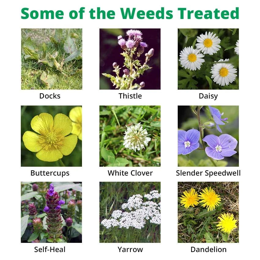 Top-rated for: Slender Speedwell, Creeping Buttercup, Plantain spp., Thistle, Selfheal, Yellow Suckling Clover, Chickweed and Common Mouse Ear, Cat’s-ear, Common Sorrel, Docks, Self-Heal, Yarrow.
