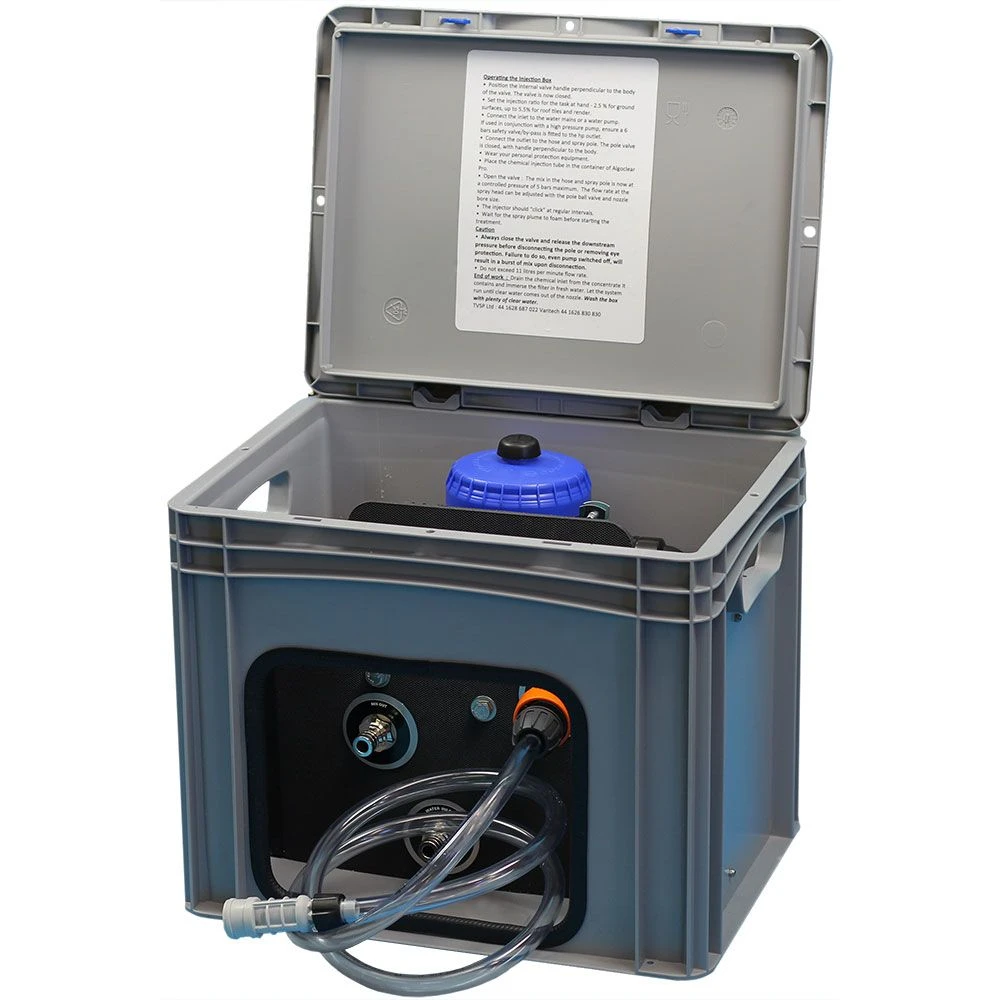 Unique dosing equipment to help spray biocide & Softwash treatments onto roofs, walls, K-Rend